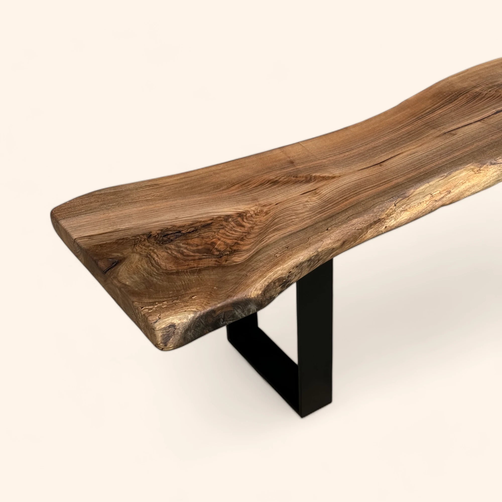 Découvrez le raffinement durable avec notre banc en noyer massif, une pièce maîtresse parfaite pour ajouter élégance et fonctionnalité à votre espace. Ce banc présente un design Live Edge qui célèbre la beauté naturelle du bois. Associé à des pieds en acier, il offre un siège confortable tout en servant d'accent décoratif dans tout intérieur moderne ou traditionnel.