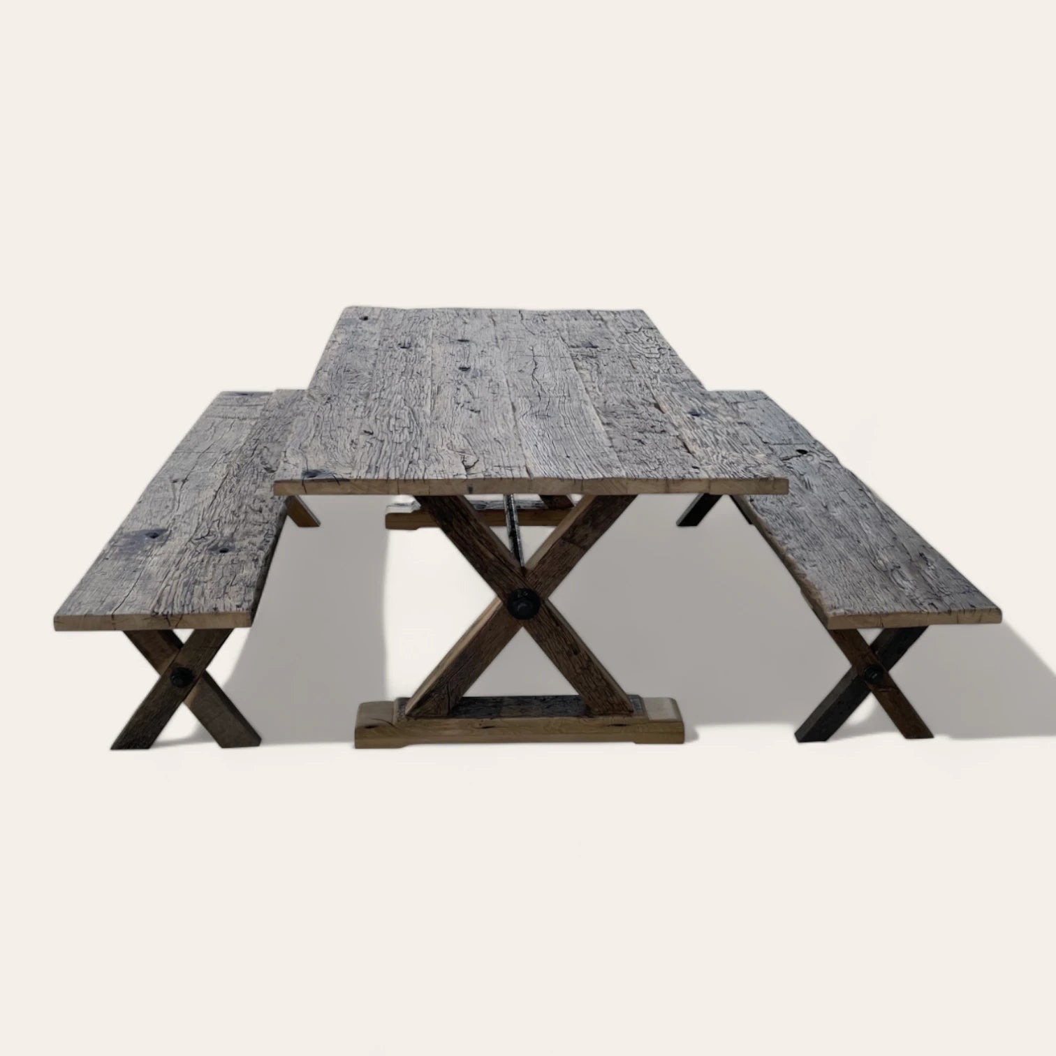 Collection unique de bancs en vieux bois, où chaque pièce est conçue pour allier style et fonctionnalité. Nos bancs, faits à partir de vieux bois récupéré et recyclé, ils sont parfaits pour ajouter une touche rustique et authentique à n'importe quel espace de votre maison, que ce soit comme banc d'entrée, banquette pour votre salon, ou même comme console d'entrée.
