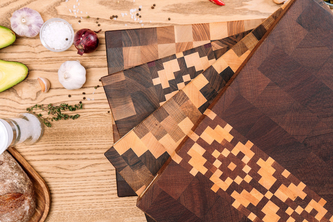 Chaque planche à découper de notre collection est fabriquée avec une précision artisanale, offrant non seulement un outil de coupe robuste mais également une pièce d'art pour votre cuisine. Nous sélectionnons les meilleurs bois, tels que le chêne centenaire, le noyer noir riche et le cerisier éclatant, pour leur durabilité et leur beauté naturelle. Nos planches sont conçues pour résister à l'épreuve du temps, grâce à leur fabrication soignée et à l'utilisation de bois de haute qualité.