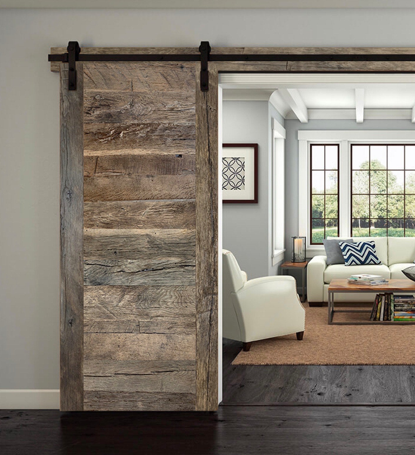 Porte coulissante bois vieilli sapin grisPrix normal €425,92