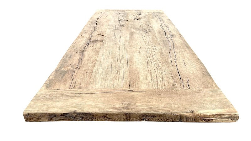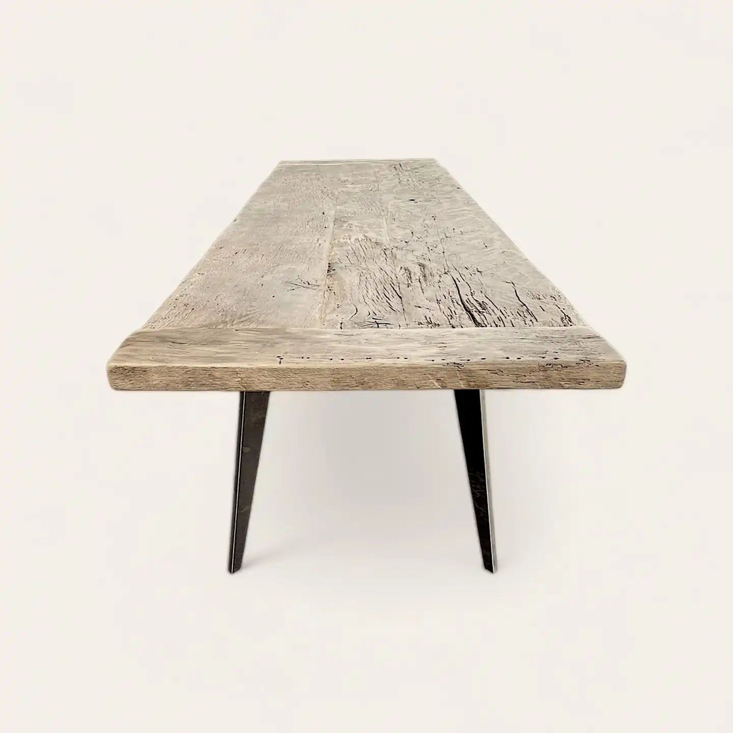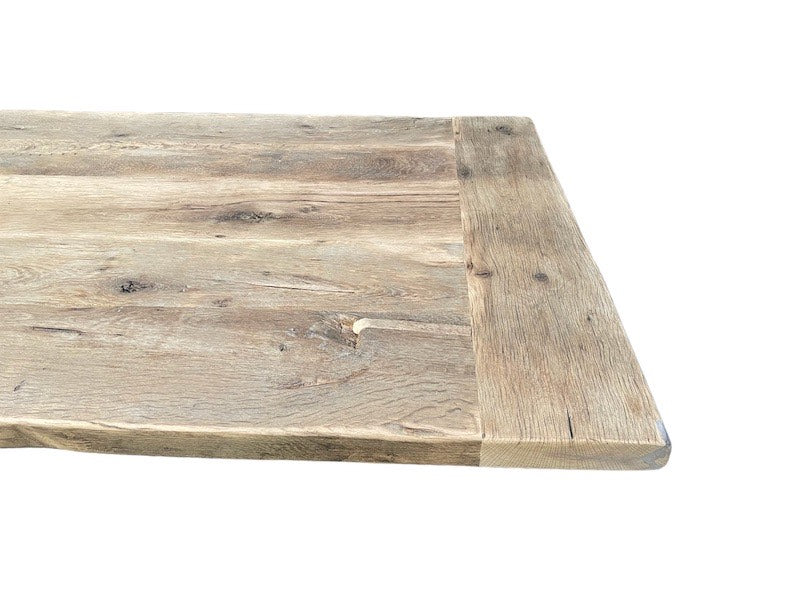 Chaque pièce, qu'il s'agisse d'étagères, de tables basses, de tables à manger, ou d'autres créations, est façonnée à partir de vieux chêne sélectionné pour sa beauté naturellement vieillie et sa robustesse inégalée.