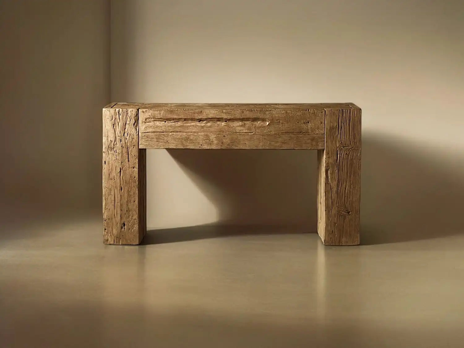 Chaque console est unique et peut présenter des variations de teintes et de textures en fonction du bois utilisé. Nous proposons diverses finitions, des surfaces laissées au naturel pour un look authentique aux finitions polies pour une touche plus contemporaine. Les détails comme les marques du temps, les veines du bois et les teintes variées ajoutent au caractère unique de chaque pièce.