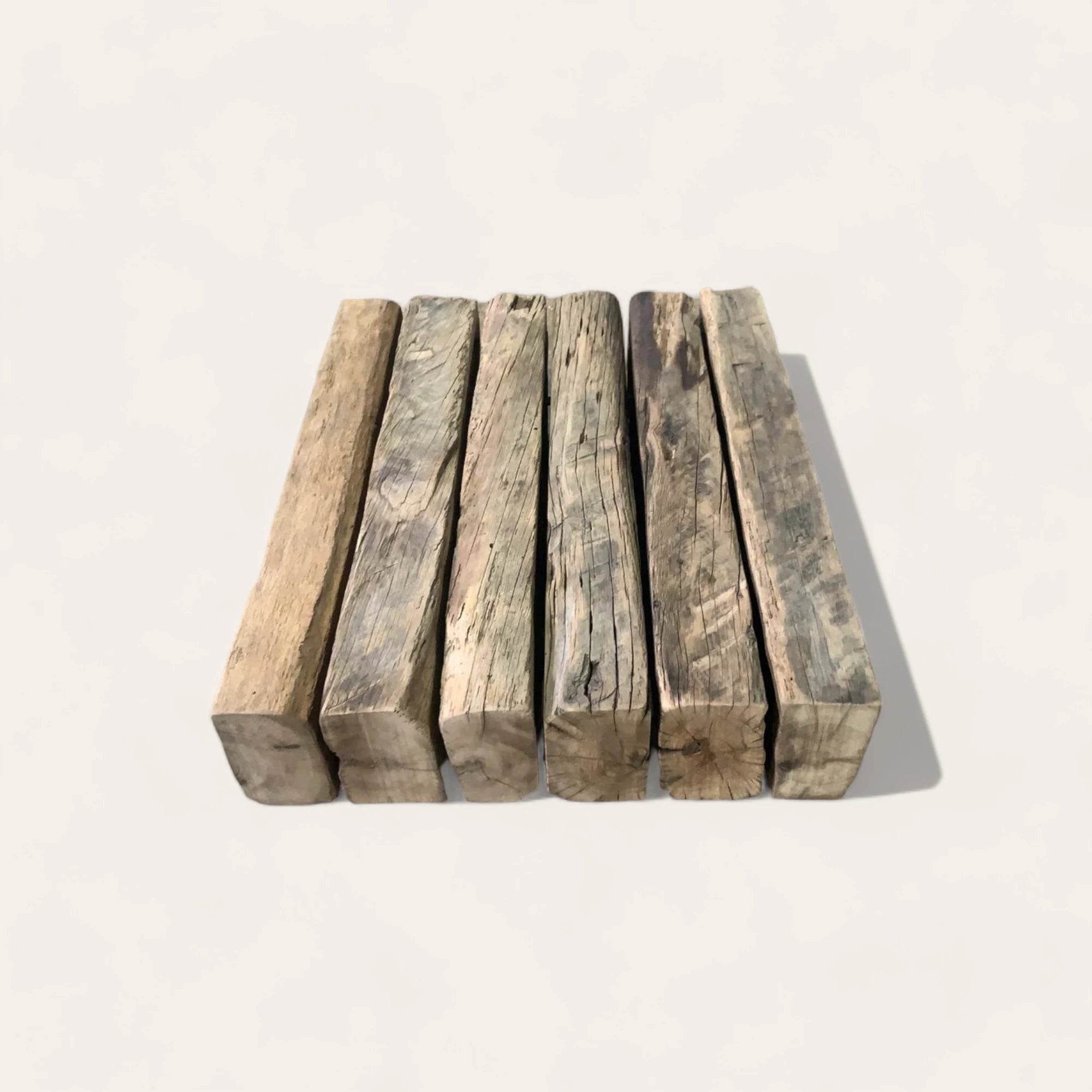 Les vieilles poutres de chêne se distinguent par une patine naturelle qui ne peut être imitée. Avec des marques, des noeuds et des veines qui racontent une histoire de décennies, voire de siècles, chaque table est unique. Cette patine se développe au fil du temps et est le résultat d'une exposition prolongée aux éléments, ce qui donne à chaque table un caractère distinctif que l'on ne trouve dans aucun bois neuf ou traité.