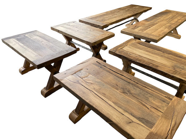 Ces poutres, autrefois éléments structurels d'édifices, trouvent une nouvelle vie dans nos plateaux, apportant avec elles une histoire et un caractère qui enrichissent chaque espace de leur présence.